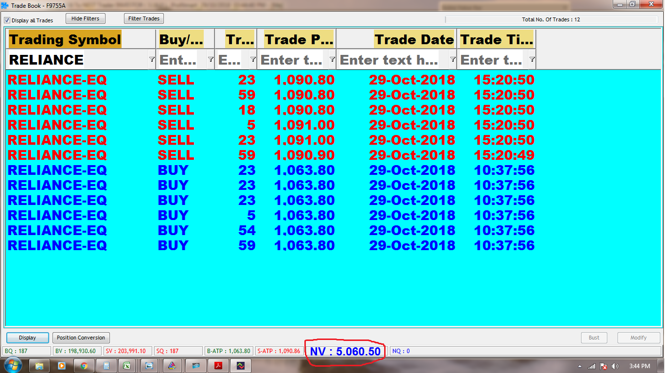 29-10-2018 Rs.5060 Profit in Reliance